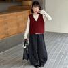 Przedstawiamy stylowy dodatek do garderoby każdej młodej fashionistki, ten inspirowany Koreą trzyskładnikowy zestaw jest idealny na sezon jesienny. Prezentując przytulną dzianinową kamizelkę w połączeniu z uroczymi spodniami w kwiaty, oferuje zarówno komfort, jak i modny wygląd dla starszych dzieci.. Długie rękawy zapewniają dodatkowe ciepło, dzięki czemu idealnie nadaje się na chłodniejsze dni.. Wykonany z wysokiej jakości bawełny, ten zestaw zapewnia miękkie i oddychające dopasowanie do noszenia przez cały dzień.