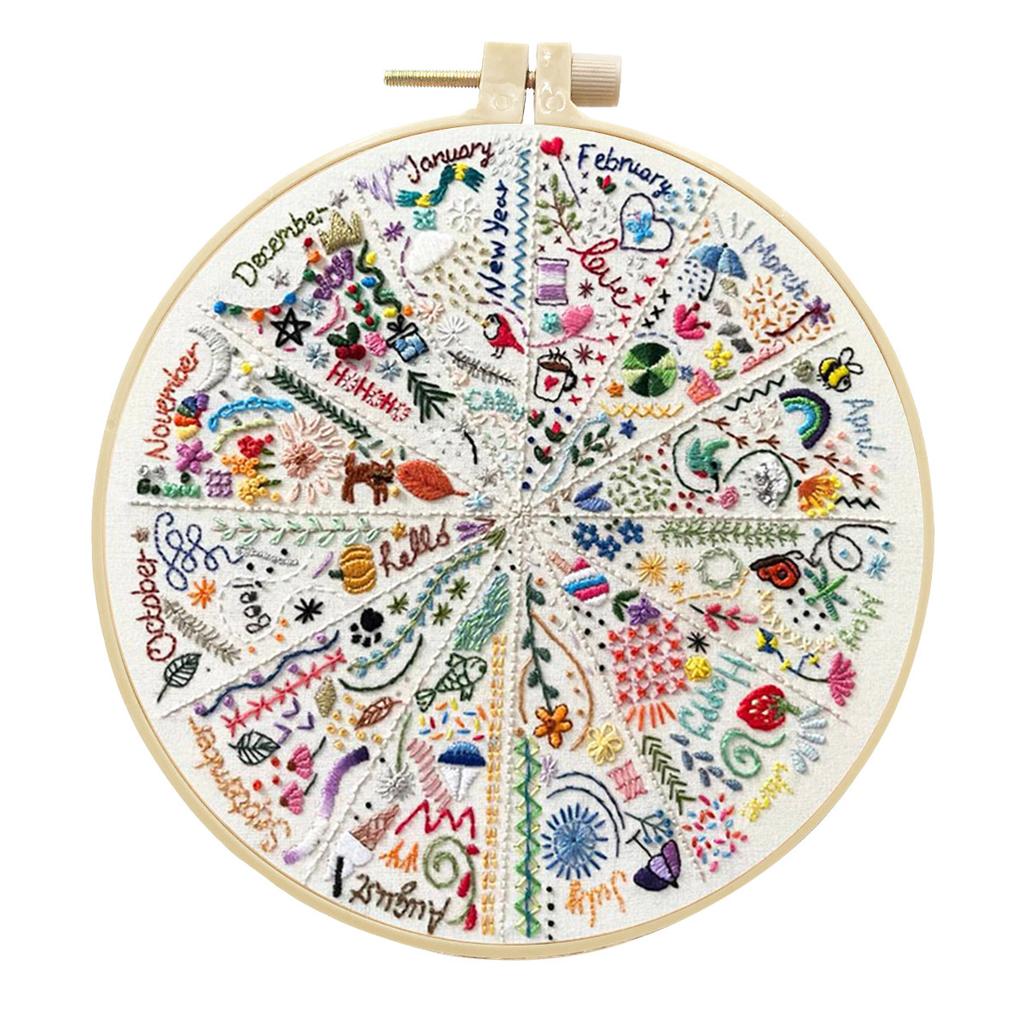 1 PC DIY Fabric Craft Kit with Round Pattern Embroidery and Tools