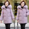 Zimowa bawełniana kurtka puchowa z kapturem z polaru, gruba parka, ciepły luźny długi płaszcz, dla kobiet w średnim wieku i babć, płaszcz śnieżny