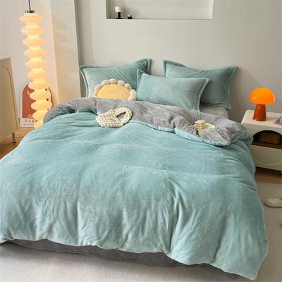 Jednokolorowy haftowany czteroczęściowy zestaw z aksamitu mlecznego, pogrubiony ciepły flanelowy koralowy aksamit dwustronny trzyczęściowy zestaw, czteroczęściowy pokrowiec na kołdrę