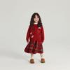 Świąteczny czerwony kardigan dziewczęcy z kreskówkowym motywem świątecznym - jesienny dzianinowy sweter-płaszcz.