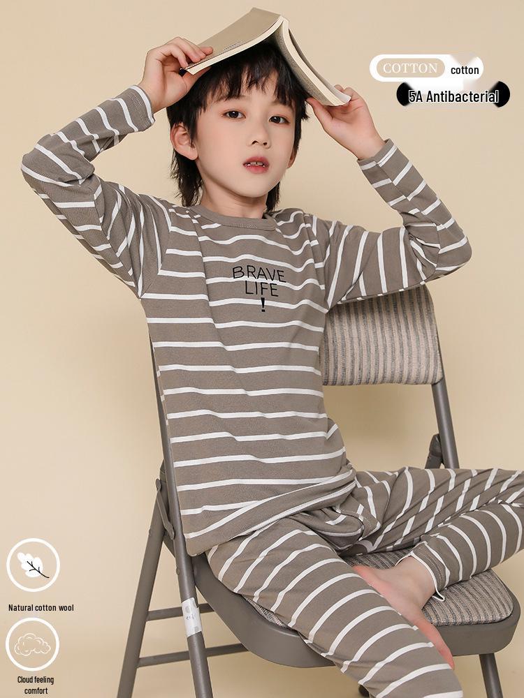 Ten przytulny zestaw piżamowy jest idealny dla chłopców w chłodniejsze jesienne miesiące. Wykonany z miękkiej mieszanki bawełny i Lycry, zapewnia ciepło i komfort dużym dzieciom i nastolatkom. Zestaw zawiera ciepły sweter i pasującą bieliznę, zapewniając idealne dopasowanie, które chroni przed zimnem.. Zaprojektowany z myślą o trwałości i swobodzie ruchów, jest idealnym wyborem zarówno do relaksu w domu, jak i na spokojny sen.