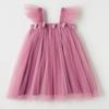 Double-Layer Butterfly Mesh Sweet Girl Strapless Fly-Sleeve Summer Puffy Princess Dress