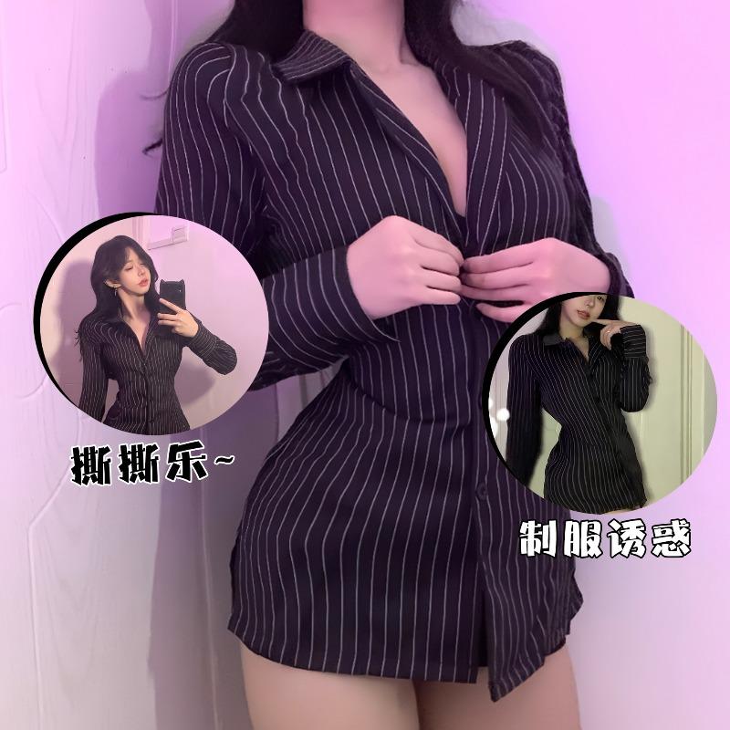 Abstinence Secretary Royal Sister Long Sleeve Striped Shirt Uniform Sexy Pure Desire Suit Black Slim-Fit Waist Top