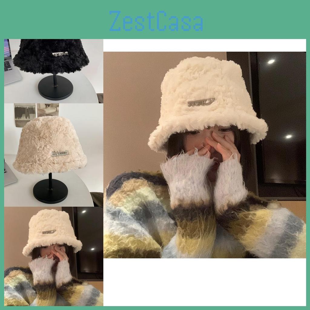 Style White Korean Bucket Hat For Women Warm And Lambswool Cozy