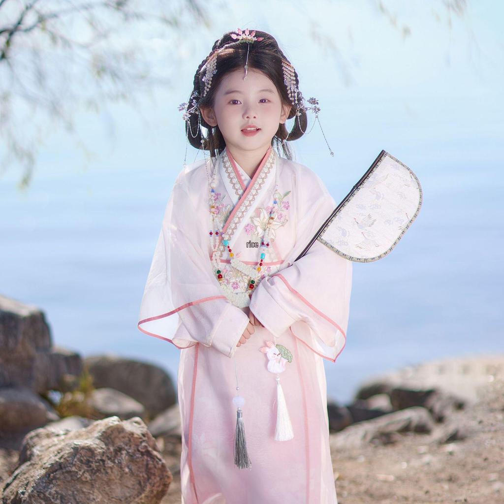 Zestaw Hanfu dla dziewczynek: Szata z Okresu Walczących Królestw z Haftem, Styl Chiński, Wiosna/Jesień, Inspirowana Bajkami dla Dzieci
