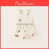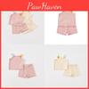 This girls' summer knit set features a short-sleeve T-shirt and five-part pants, designed for ages 3-8 and heights 80-140cm. Made of cotton, the lightweight and soft fabric ensures comfort during warm weather. Suitable for casual outings and playtime, the set is pre-washed for durability. Wipe clean with a damp cloth to maintain quality.