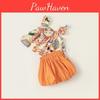 Children Tie Dye Patterned Overalls And Knitted Tops Two Piece Set For Autumn