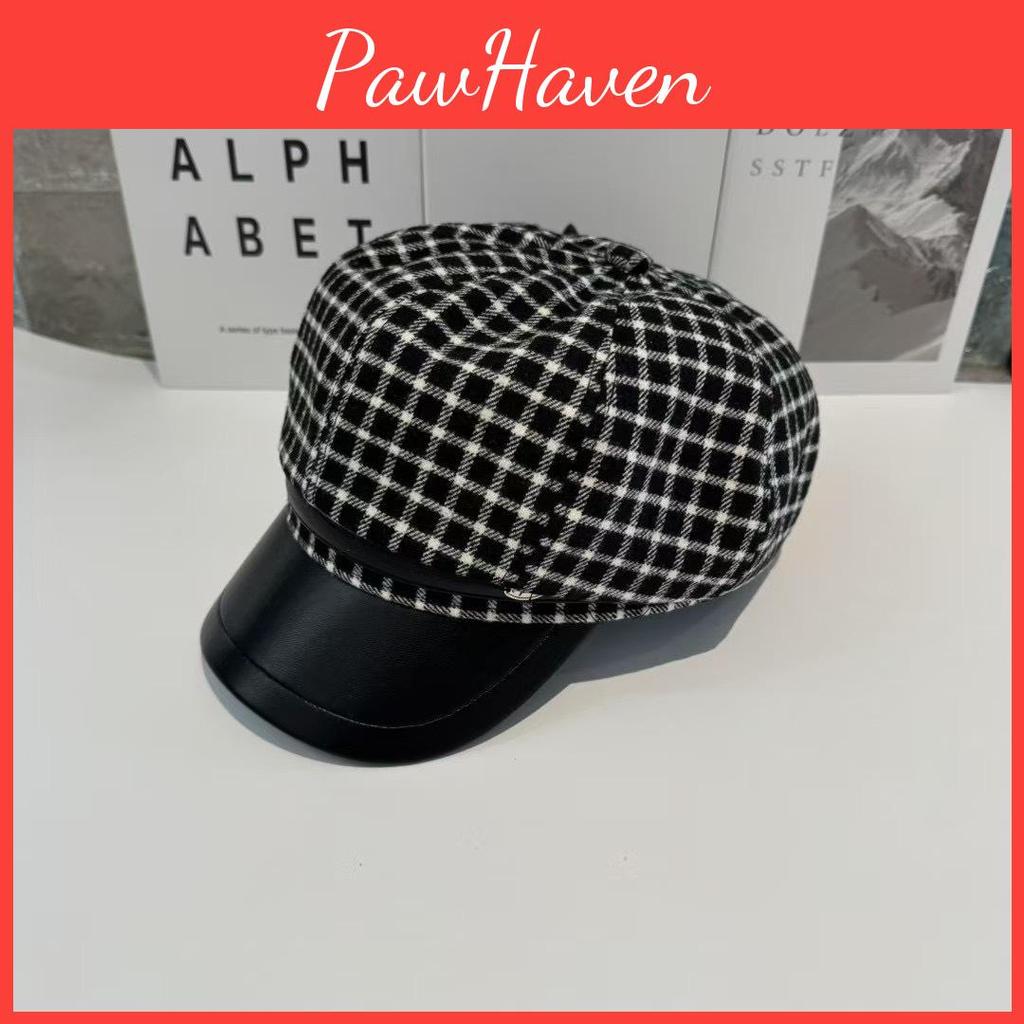 Retro Plaid Style Octagonal Cap With Wide Brim For Casual And Street Fashion