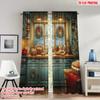 2pcs 2D flat printing Curtains Vintage Kitchen Cake Baking Polyester Without Electricity Festive Curtains for Holiday Decor