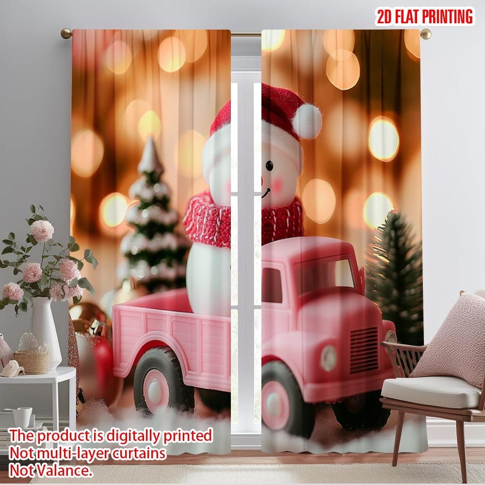 2pcs,2D plane printing Curtains Digital Printed Cute Snowman Truck Christmas Versatile 100% Polyester (without rod) Art Deco
