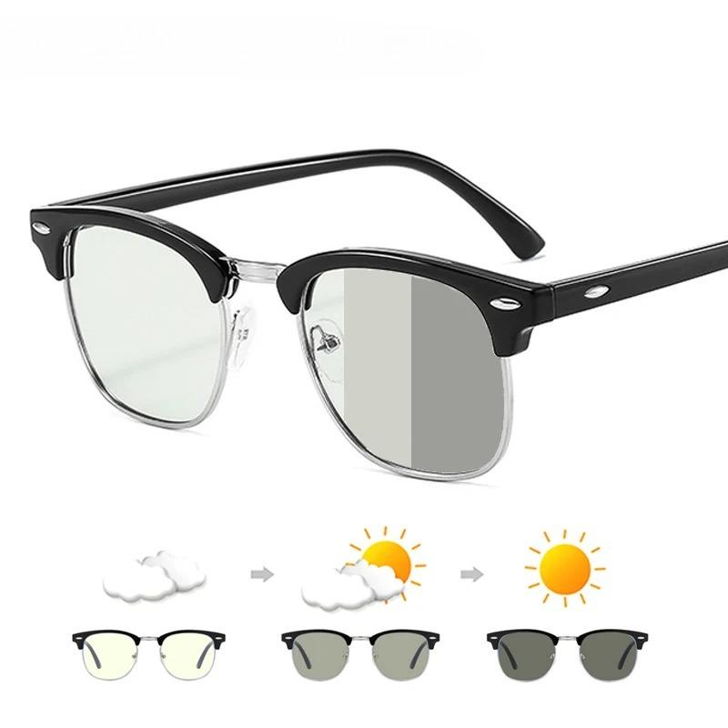 Semi Rimless Photochromic Glasses Men Anti Blue Light Blocking Color Changing Eyeglasses Square Computer Ray Retro Women Eyewear