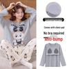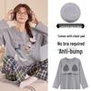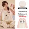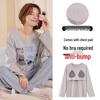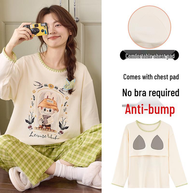 Piżama damska z długim rękawem i nadrukiem w kreskówkowe wzory, z wkładką na klatkę piersiową – uroczy komplet z okrągłym dekoltem do noszenia w domu lub na okrycia wierzchnie wiosną, jesienią i zimą