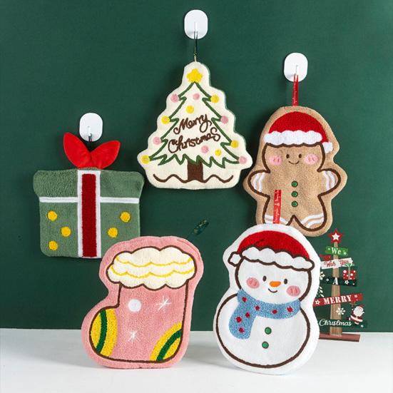 Świąteczny Ręcznik do Rąk Miękki Chłonny Ręcznik z Polaru Koralowego Wzór Dzwonków Świętego Mikołaja Szybkoschnący Ręcznik Świąteczny