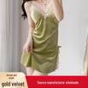 Autumn & Winter Sexy Gold Velvet Pajamas - Women's Lace Camisole Nightdress