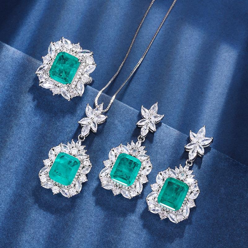 Jewelry Copper Bottom Gold-Plated Simulation Emerald Retro Square Set Heroine Stone 10 * 12