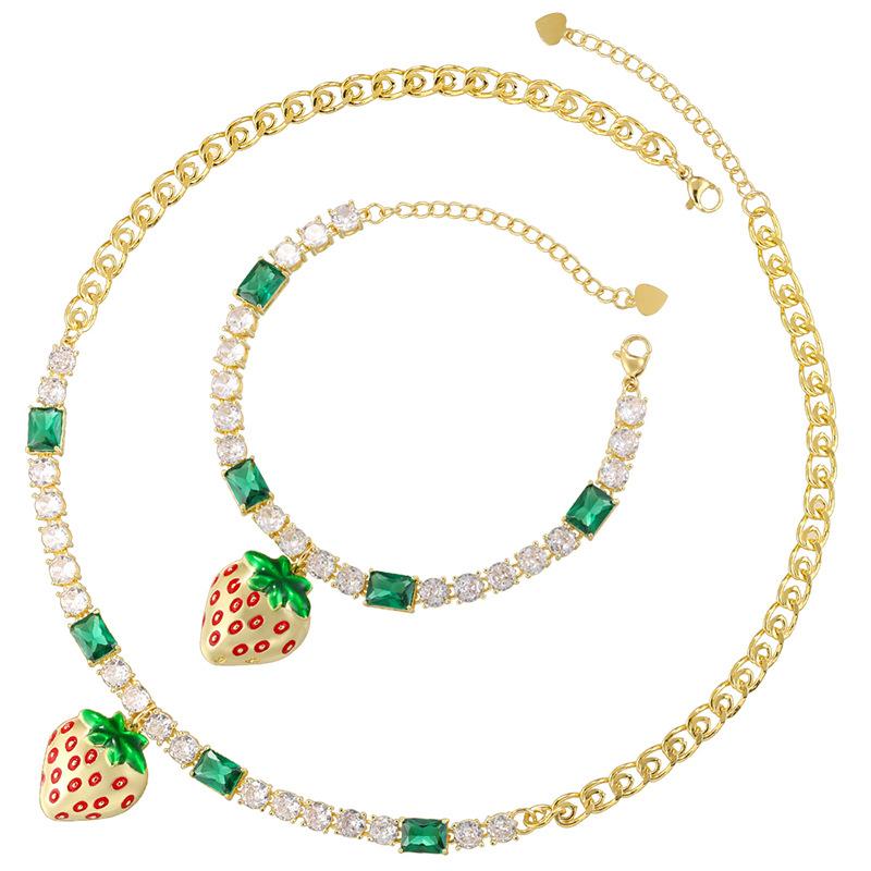 Exquisite Sweet Copper Diamond Strawberry Bracelet Necklace Premium Fruit Jewelry Set Vl633-634