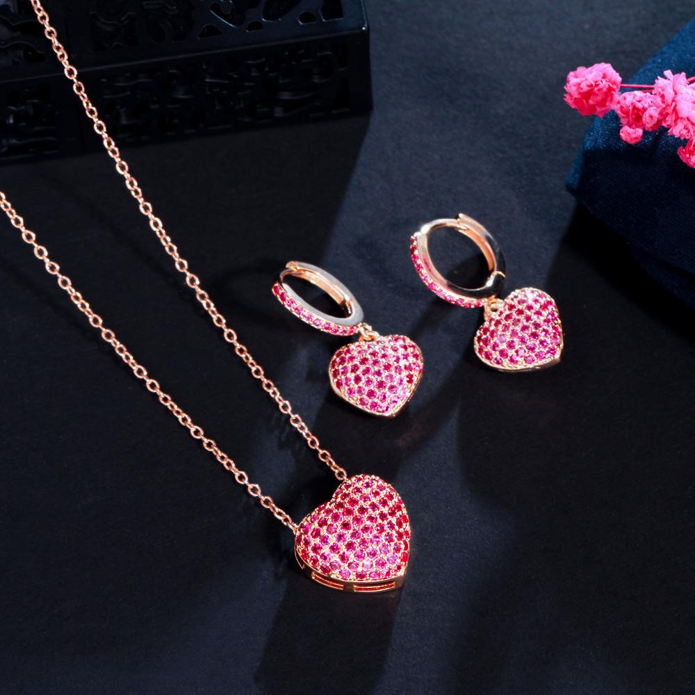 Prosty i Wykwintny Naszyjnik z Cyrkonowym Diamentem w Kształcie Serca, Słodka Dziewczyna Trójwymiarowy Wisiorek Miłości Kolczyk Pokrywa Łańcuszek