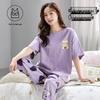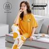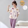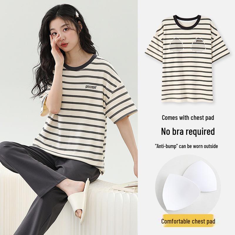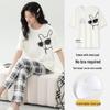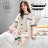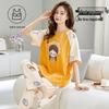 Damski kreskówkowy komplet piżamy z krótkim rękawem i wkładkami na biust - Letni bawełniany długi komplet domowy 2025