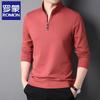 Romon Men's Long-Sleeve Loose Fit Quarter-Zip Polo T-Shirt