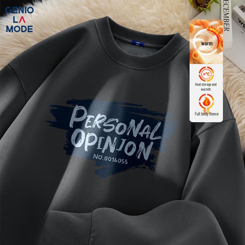 GENIOLAMODE Męska bluza crewneck z nadrukiem graficznym, ocieplana polarem