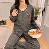 Cherry Cardigan Pajama Set: Women's Drawstring Fleece with Chest Pad - Korean-Style, Long Sleeve, Two-Piece Homewear.
