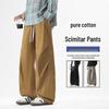 VUUG Men's Retro Pleated Wide Leg Cotton Cargo Pants