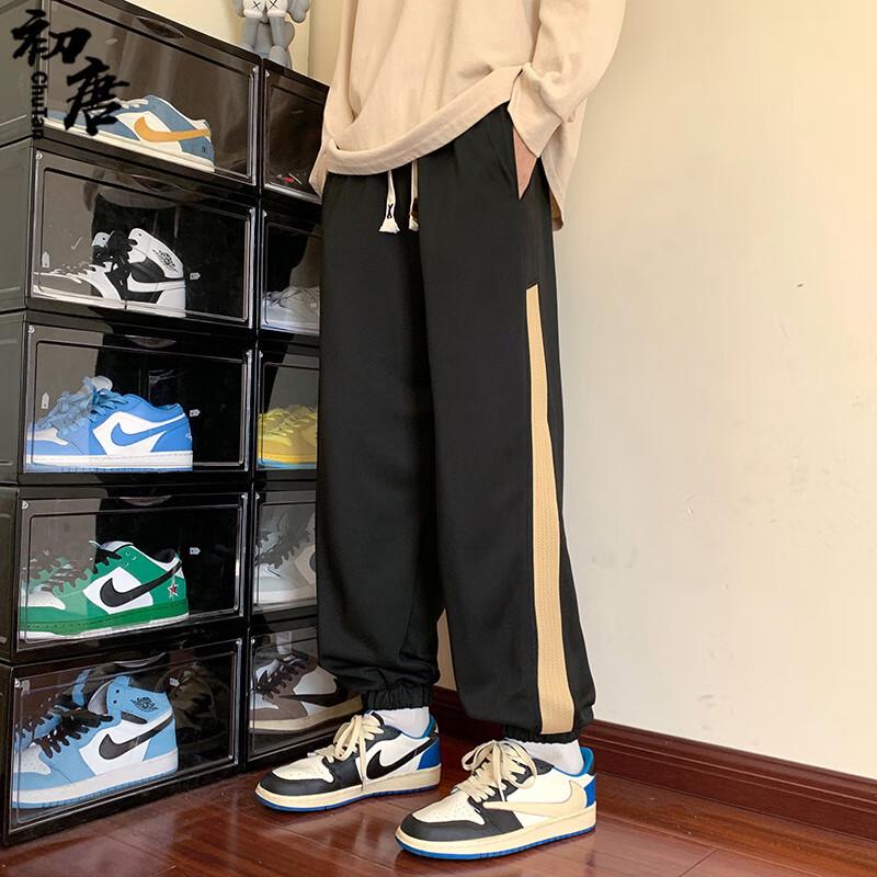 Męskie retro zwężane spodnie dresowe sportowe casual