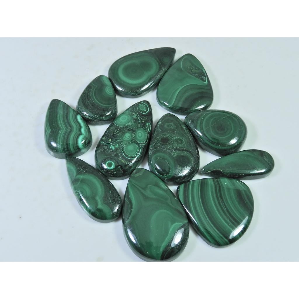 11Pcs Natural Green Malachite Pear Cabochon Loose Gemstone 310Cts. Lot C-470