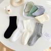 Women's Pure Cotton Miu-Style Solid Color Mid-Calf Socks - Spring & Autumn, Loose Fit, Versatile Fashion.
