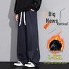 Męskie dzianinowe spodnie dżinsowe o prostych nogawkach, podszyte polarem, w dużych rozmiarach