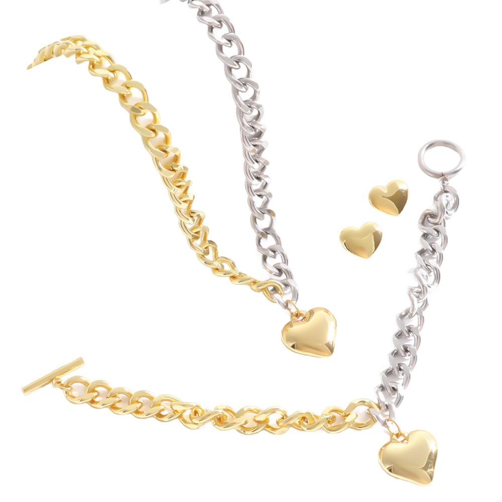 18K Gold-Plated Cuban Chain Necklace, Titanium Steel OT Buckle Bracelet, Light Luxury Fashion Earrings Set