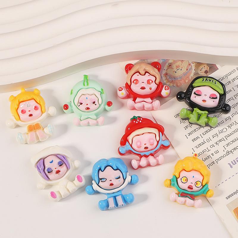 Cartoon Girl Resin Accessories: Cute Sitting Pose DIY Phone Case, Keychain, and Headwear Components