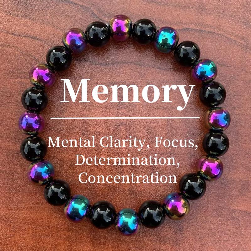 Siedmiokolorowa elastyczna bransoletka z koralików hematytu i obsydianu