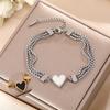 Damska dwustronna bransoletka z sercem, czarno-biała: Trzywarstwowy Łańcuch, Luksusowa Stal Tytanowa Pokryta Złotem, Odporna na Ścieranie.