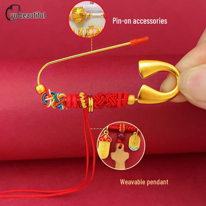 Złota broszka dla noworodka - Chiński styl półprodukt wisiorek uspokajający DIY prezent