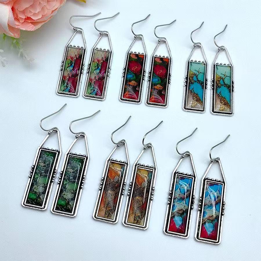 Kolczyki wiszące z imitacją turkusu w stylu Retro Bohemian