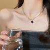 Naszyjnik sweterkowy Black Pearl Heart Baroque - Luksusowy łańcuszek na obojczyk dla kobiet