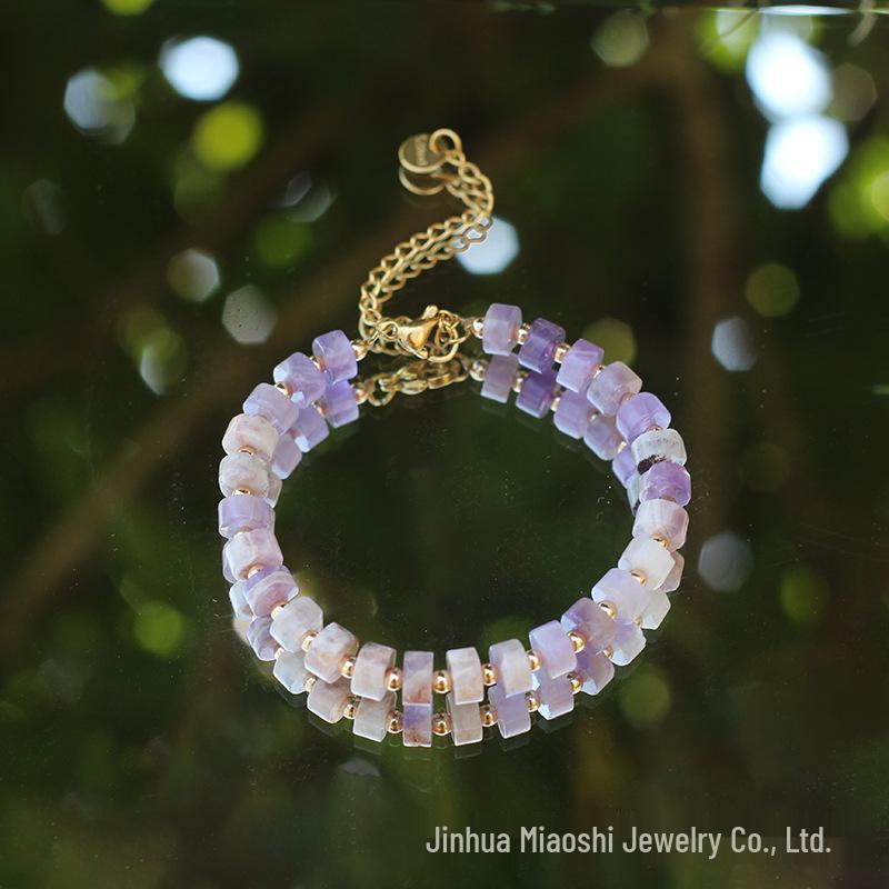 Bransoletka z kryształu ametystu - Damska, regulowana, ze stali nierdzewnej, z zapięciem typu homar