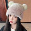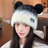 Color Matching Sweet and Cute Bear Ears Plush Hat for Women Winter Thickened Warm Knitted Hat Showing Face Small Toe Cap