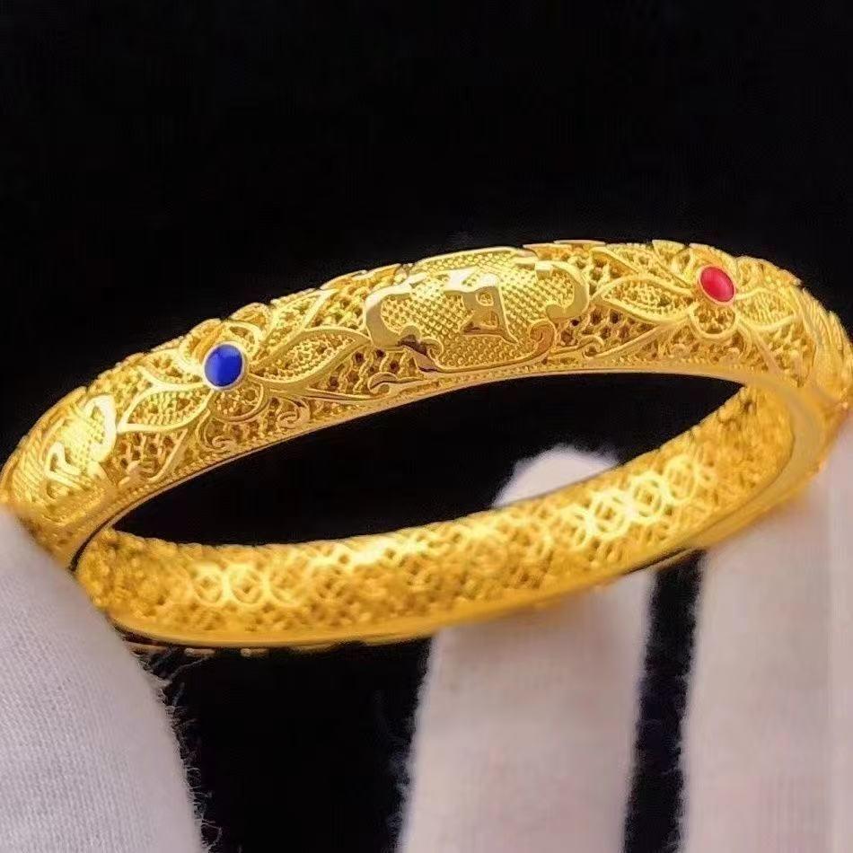 Pozłacana bransoletka z lotosem - Damska bransoletka w kolorze imitowanego złota z mantrą sześciu sylab, Lekka luksusowa biżuteria ślubna