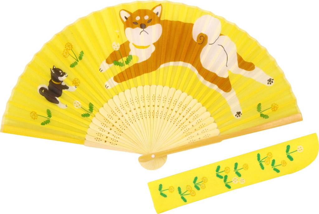 Silk folding fan, Japanese patterned goods, dog goods, dog illustration fan, overseas souvenir, gift, summer goods, summer festival, fireworks display