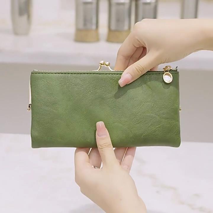 Portfel Retro Damski Jednolity Kolor Wielofunkcyjny Długi Portfel Vintage Kopertówka Portmonetka Damski Etui na Karty Portfel na Zamek Błyskawiczny