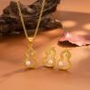 Elegant Gourd Pendant Necklace & Sand Gold Stud Earring Set for Women - Inlaid Diamond & Long-lasting Color Jewelry