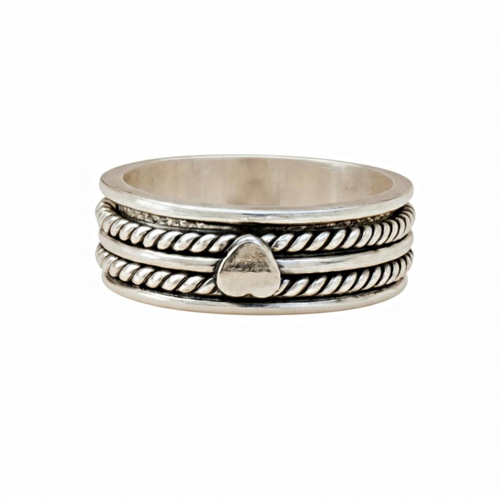Pierścionek Spinner z Sercem, Srebro Próby 925, Pierścionek Worry Band, Pierścionek Fidget Spinner, Pierścionek Obietnicy, Pierścionek do Medytacji