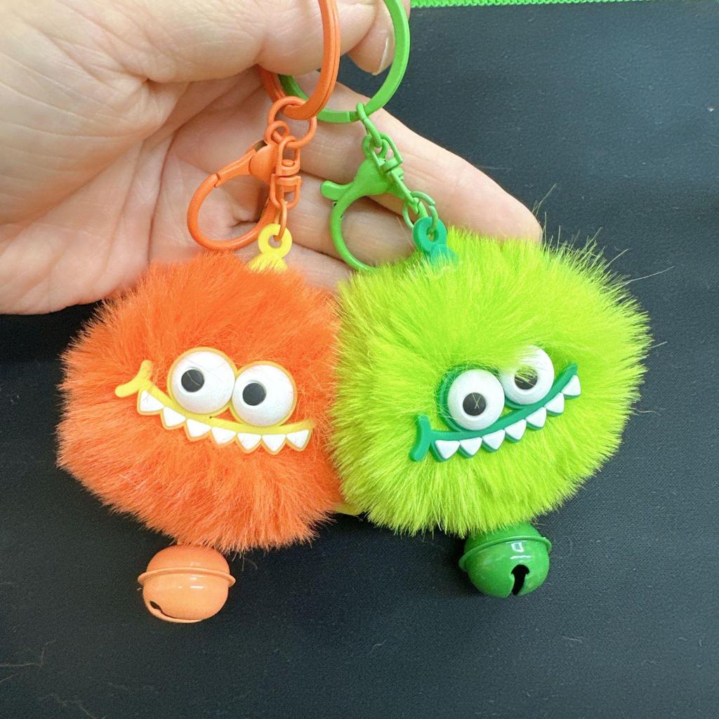 Brelok Mały Potwór Dinozaur: Uroczy Pluszowy Królik Rex z Futra z Dzwoneczkiem - Akcesorium do Torebki i Telefonu