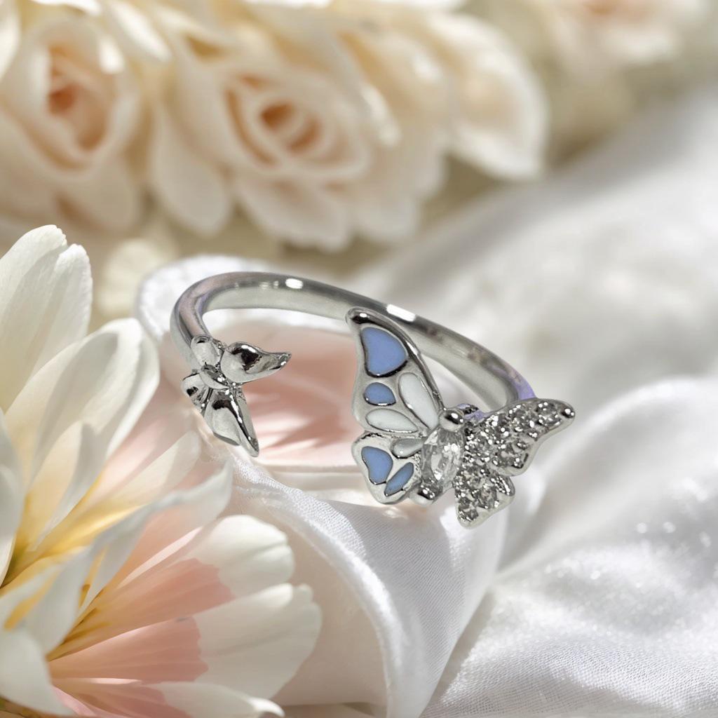 Pierścionek z emaliowanym wężem i koniczyną, motylem, diamentem i tulipanem, transgraniczny