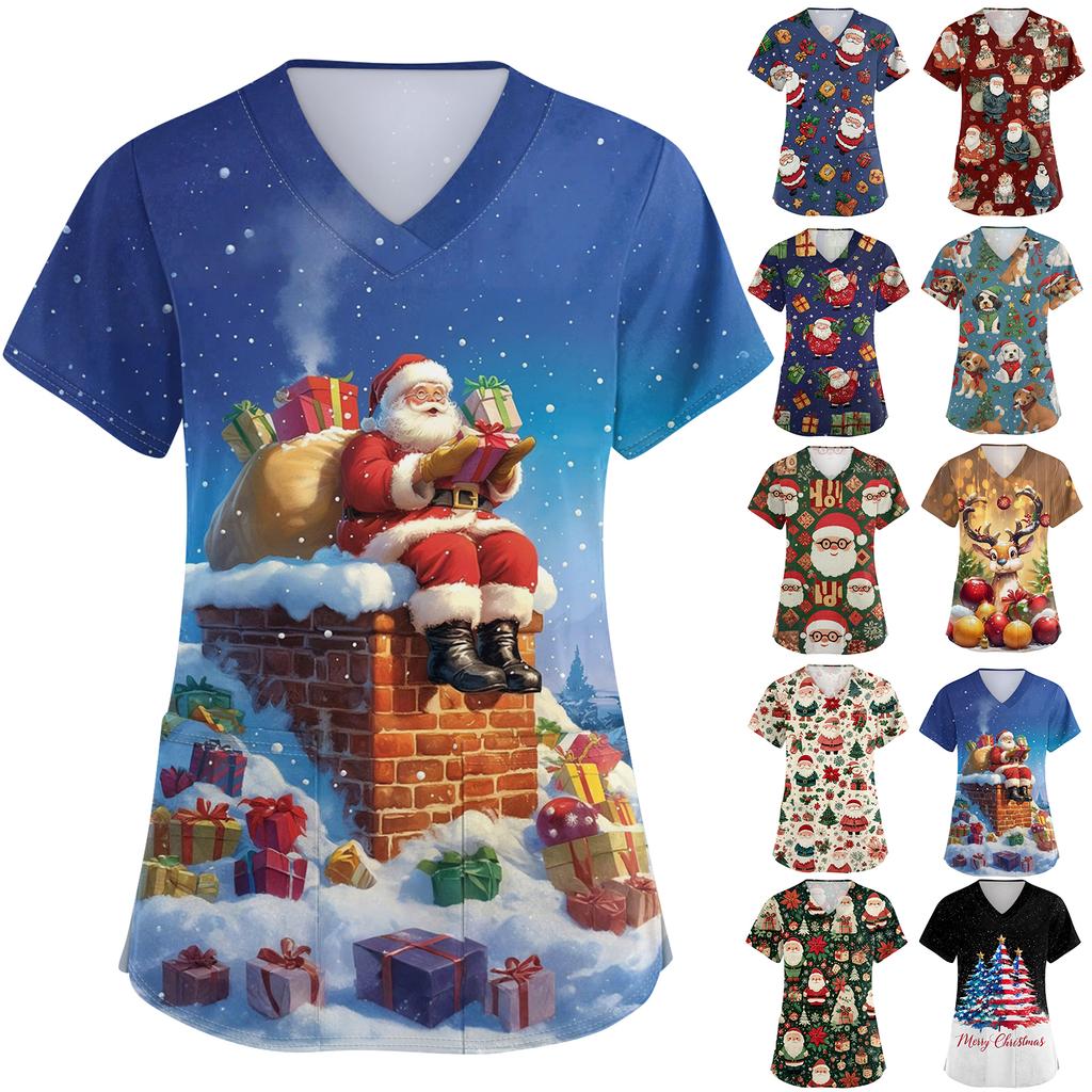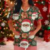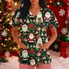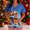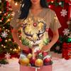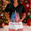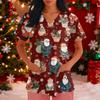 Women's Loose Short Sleeved Fashionable Tooth Pattern Printing V-neck Buttonable Side Slit Top T-shirt