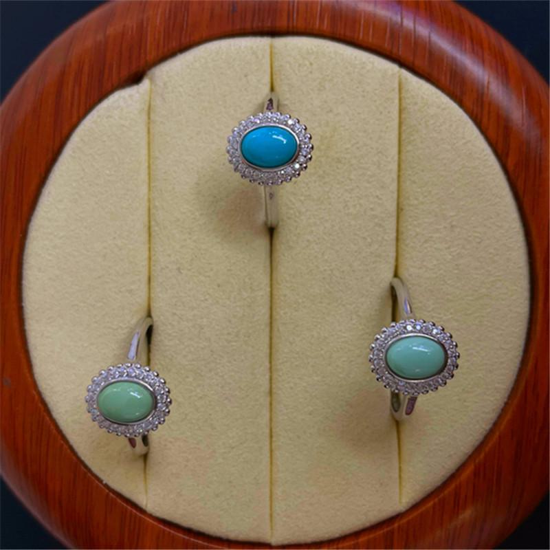 Pierścionek ze srebra S925 z naturalnym kaboszonem turkusu Hubei - Elegancki design w stylu light luxury