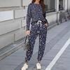Zestawy Damskie 2-częściowe Koszulki z Okrągłym Dekoltem i Długim Rękawem Drukowane Spodnie Dresowe Zestawy z Kieszeniami